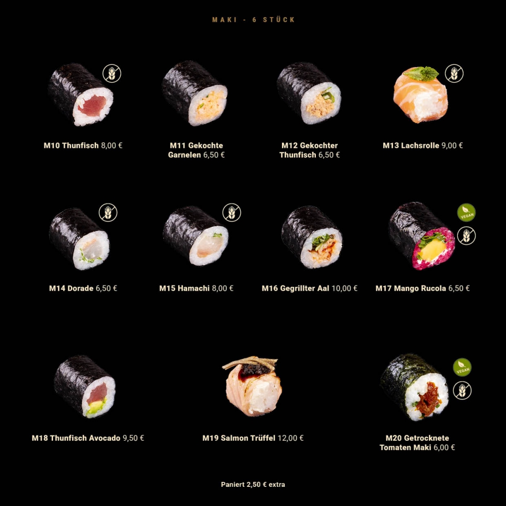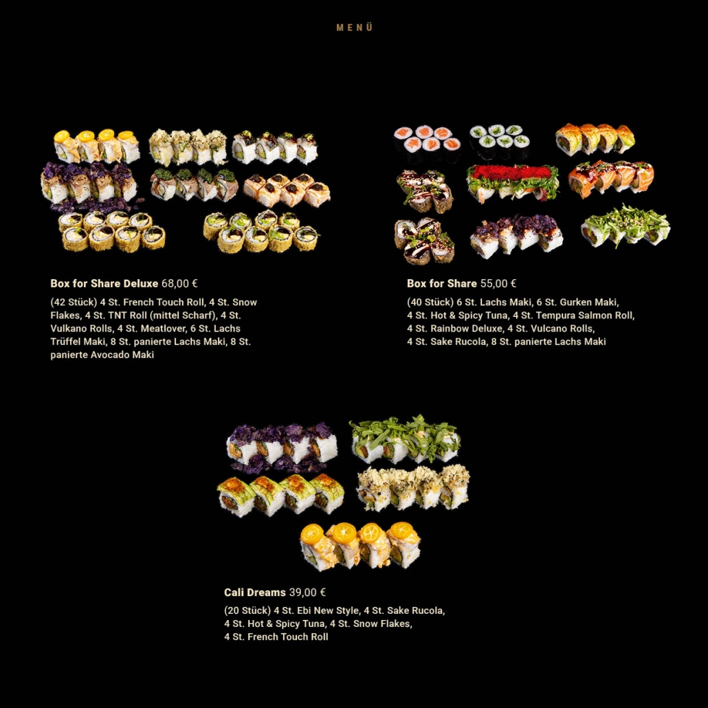 Hier könnt Ihr Euch einen Eindruck unserer Sushi-Kreationen und leckeren Drinks machen: